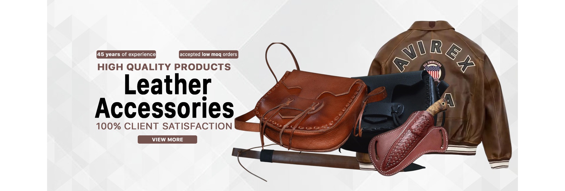 Leren pantser, lederen riemen, leren tassen, lederen hoesjes, messen en zwaarden,